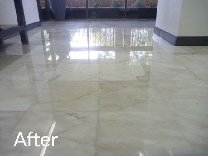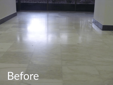 The floor was full of dull patches and marks. After polishing, it's smooth and shiny again. So glad we didn’t replace it. Hard to find workers who actually show up on time here, but they did. Marble hallway and staircase look brand new.